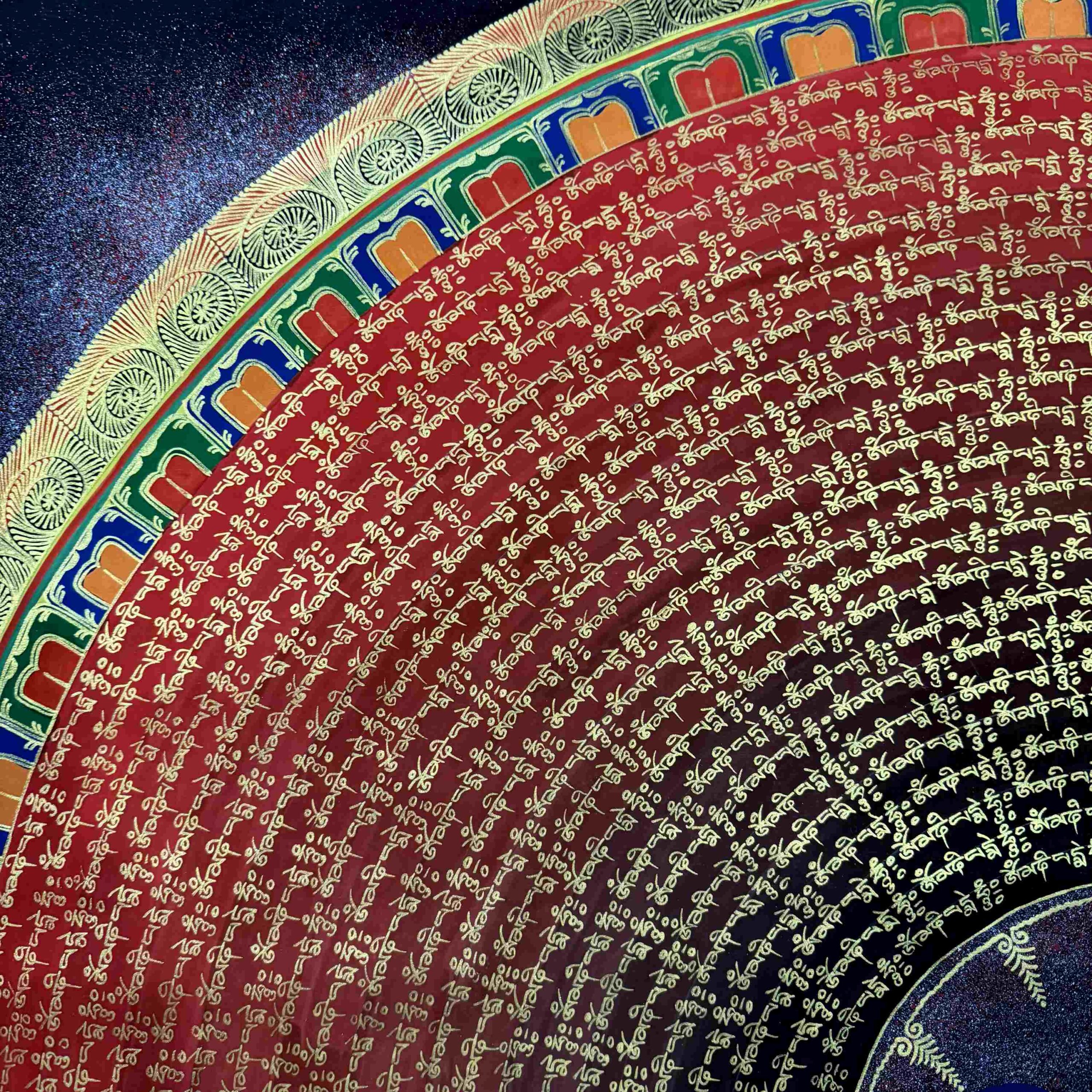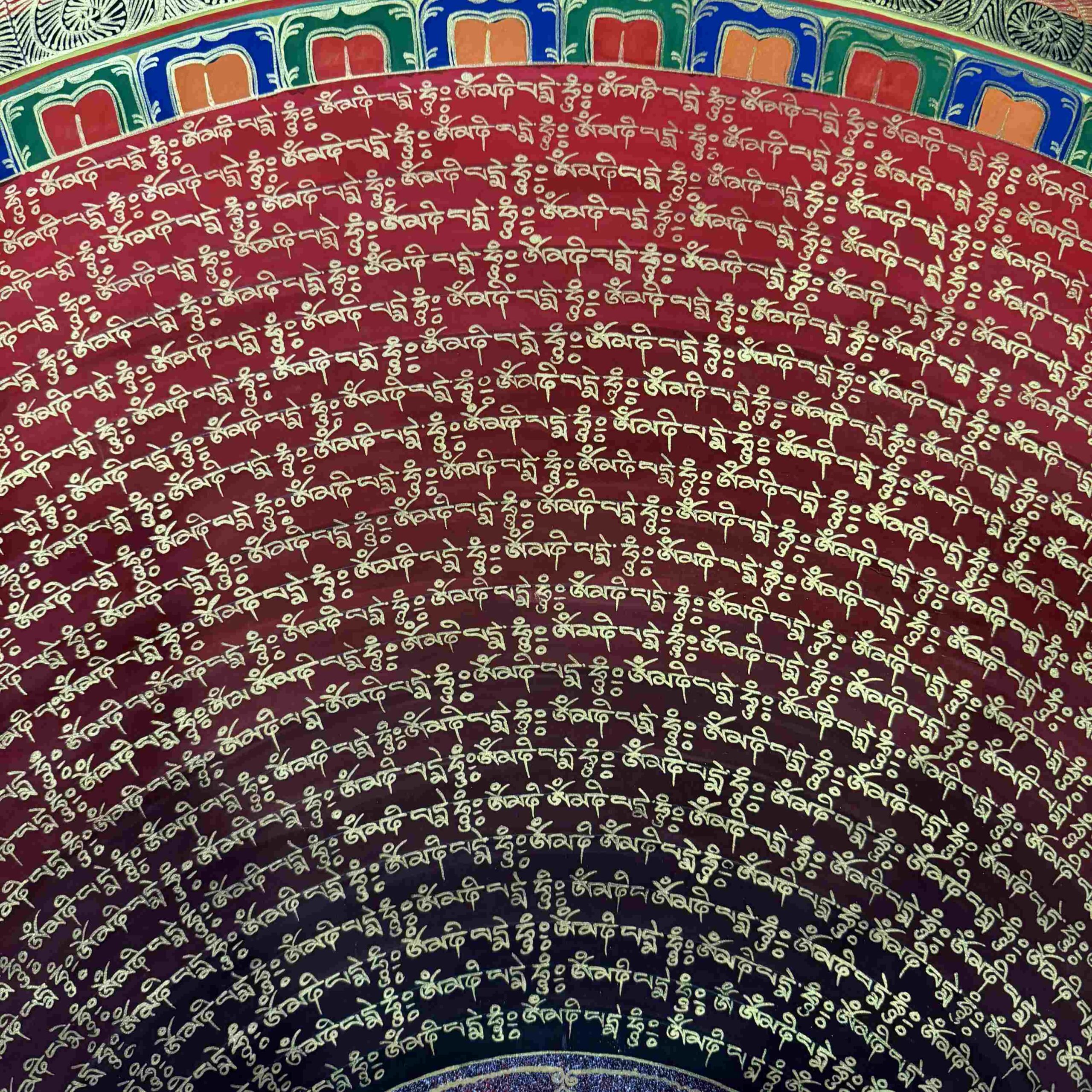 Mantra here refers to the recitation of the essence words of the particular rituals of deities. When the word mantra is separated into two segments, it reveals the inner menning of salvaging one’s mind from conceptualization, concept and fear. “Man” in Sanskrit means mind, and “tra” in Sanskrit means to protect. “om mani padme hum” the six syllables, om mani pad me hum, mean that in dependence on the practice of a path which is an indivisible union of method and wisdom, you can transform your impure body, speech, and mind into the pure exalted body, speech, and mind of a Buddha.