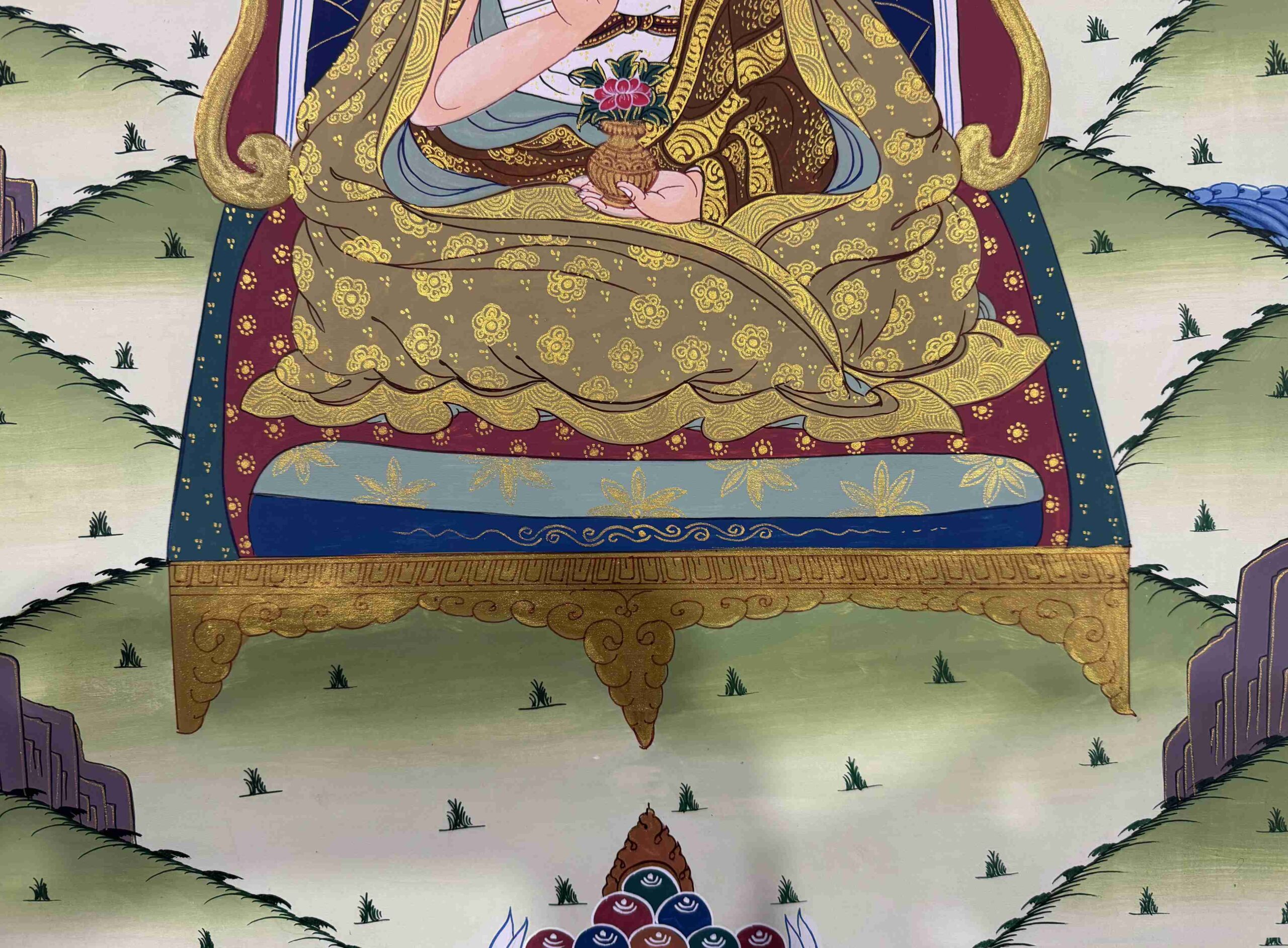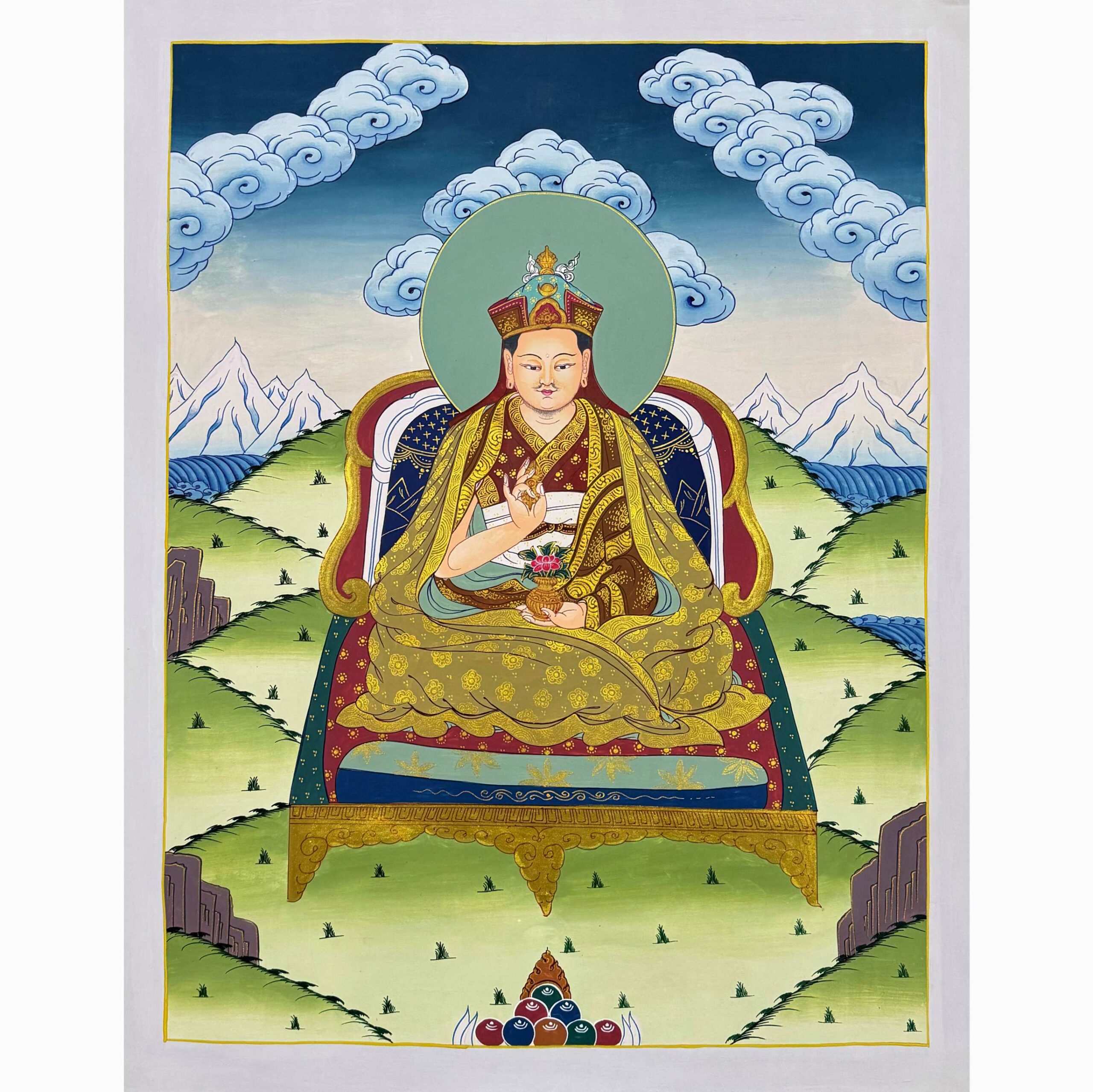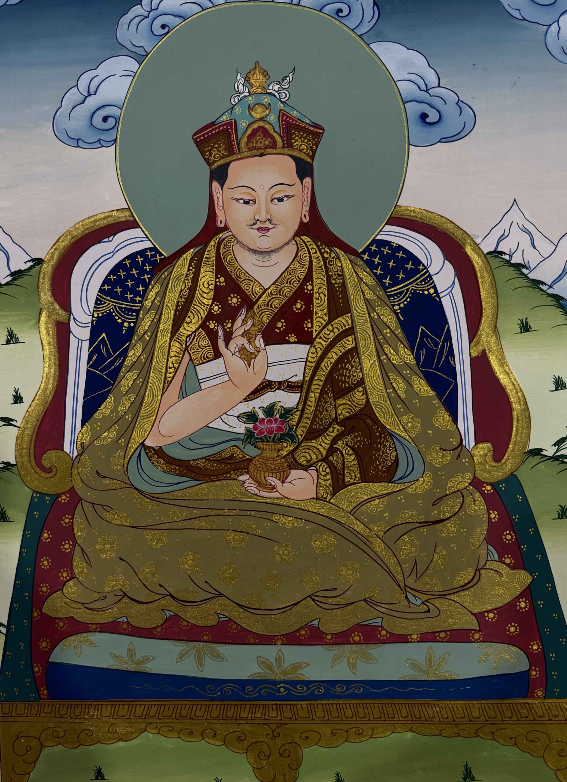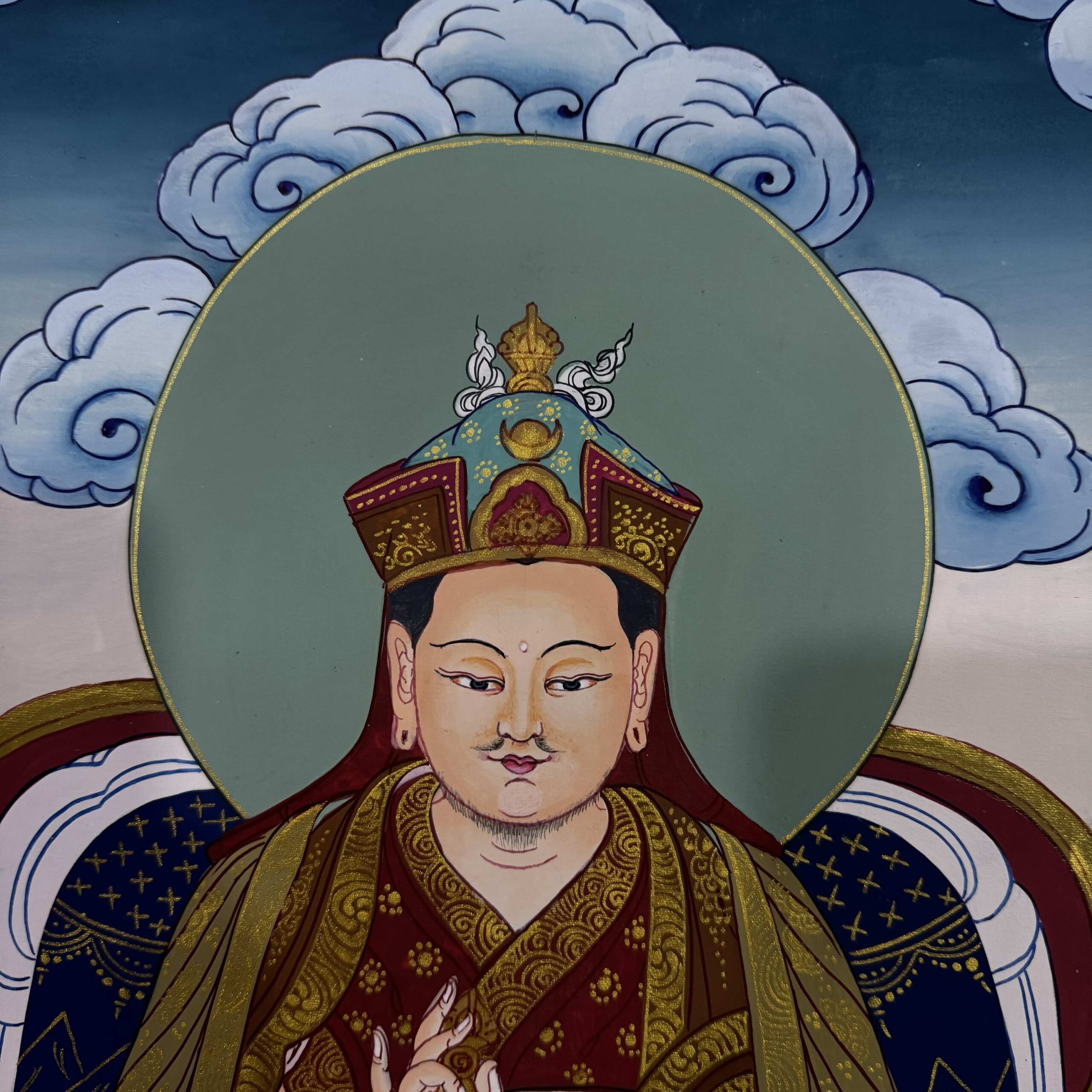 This thangka captures not only the likeness of Chokgyur Dechen Lingpa but also the profound spiritual energy and blessings associated with his teachings and lineage, making it a powerful piece for meditation and devotional practice.