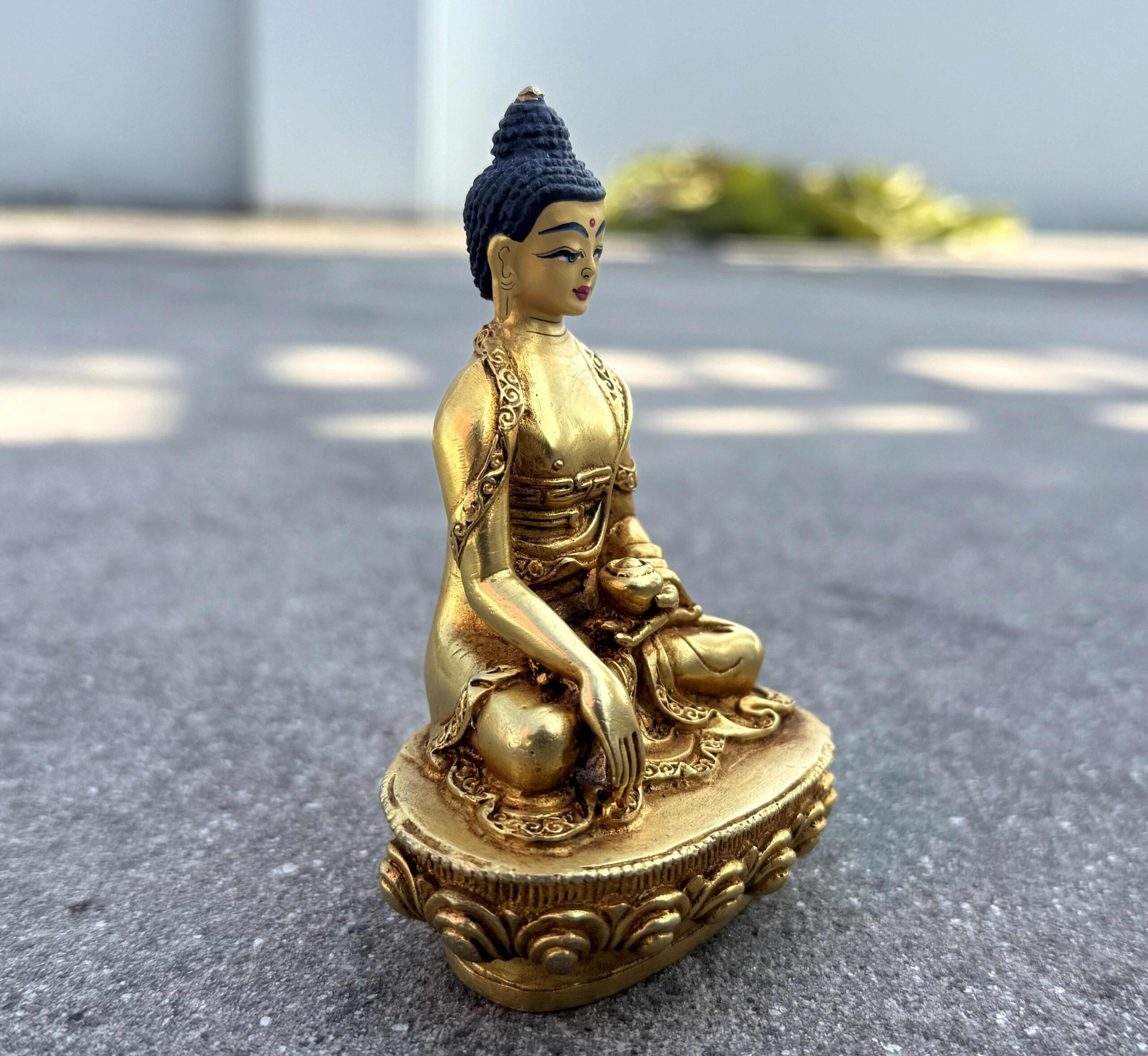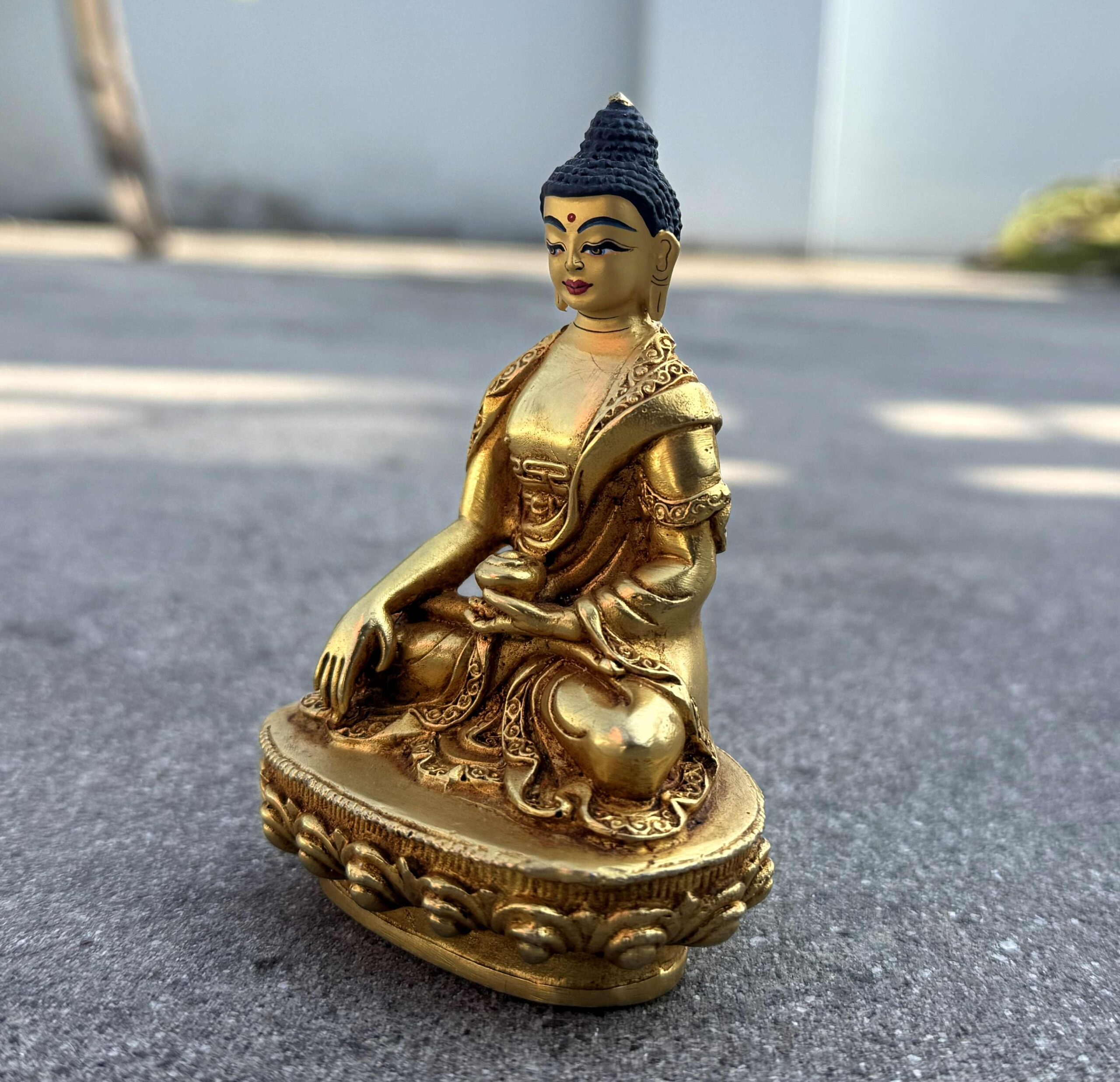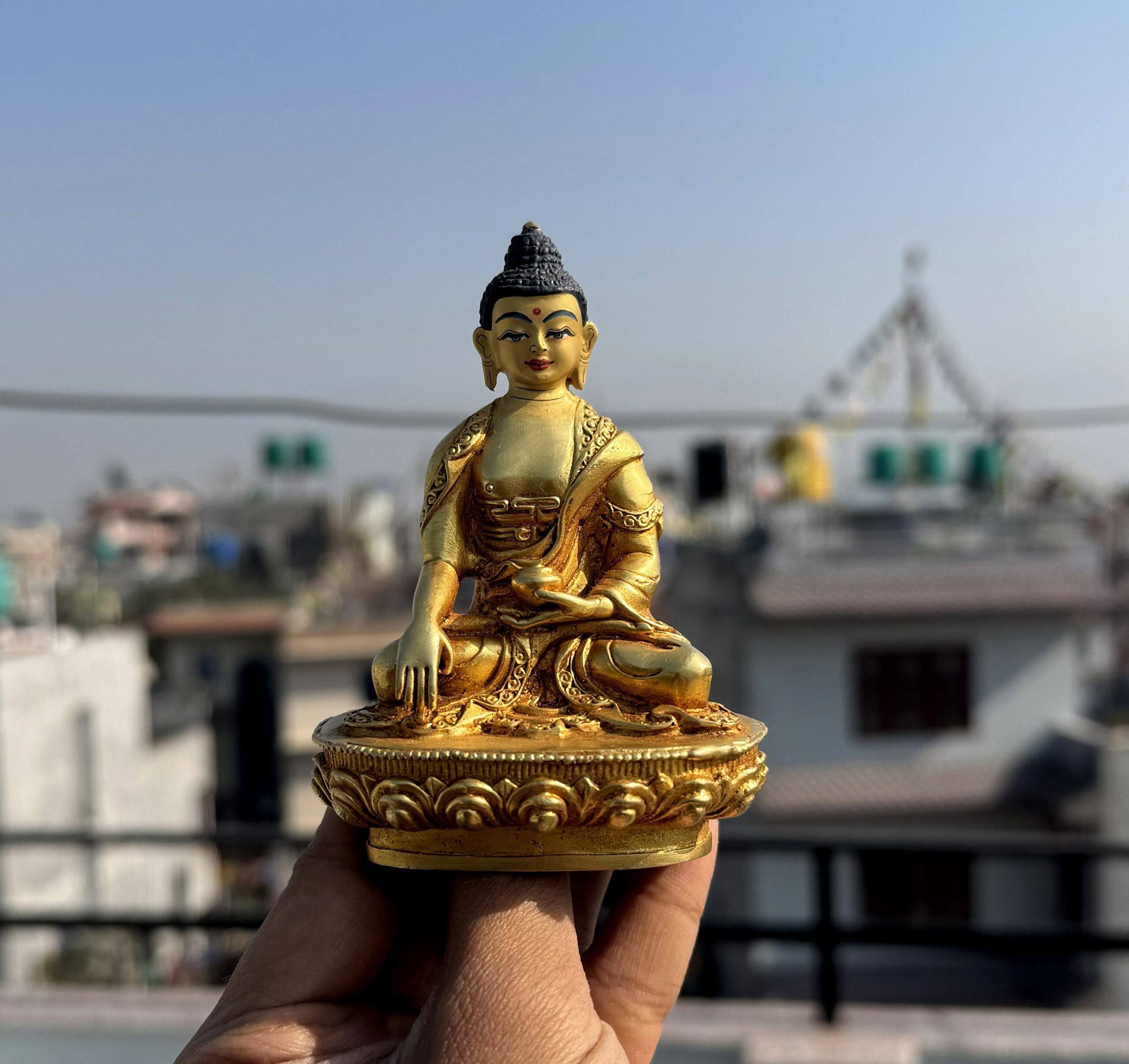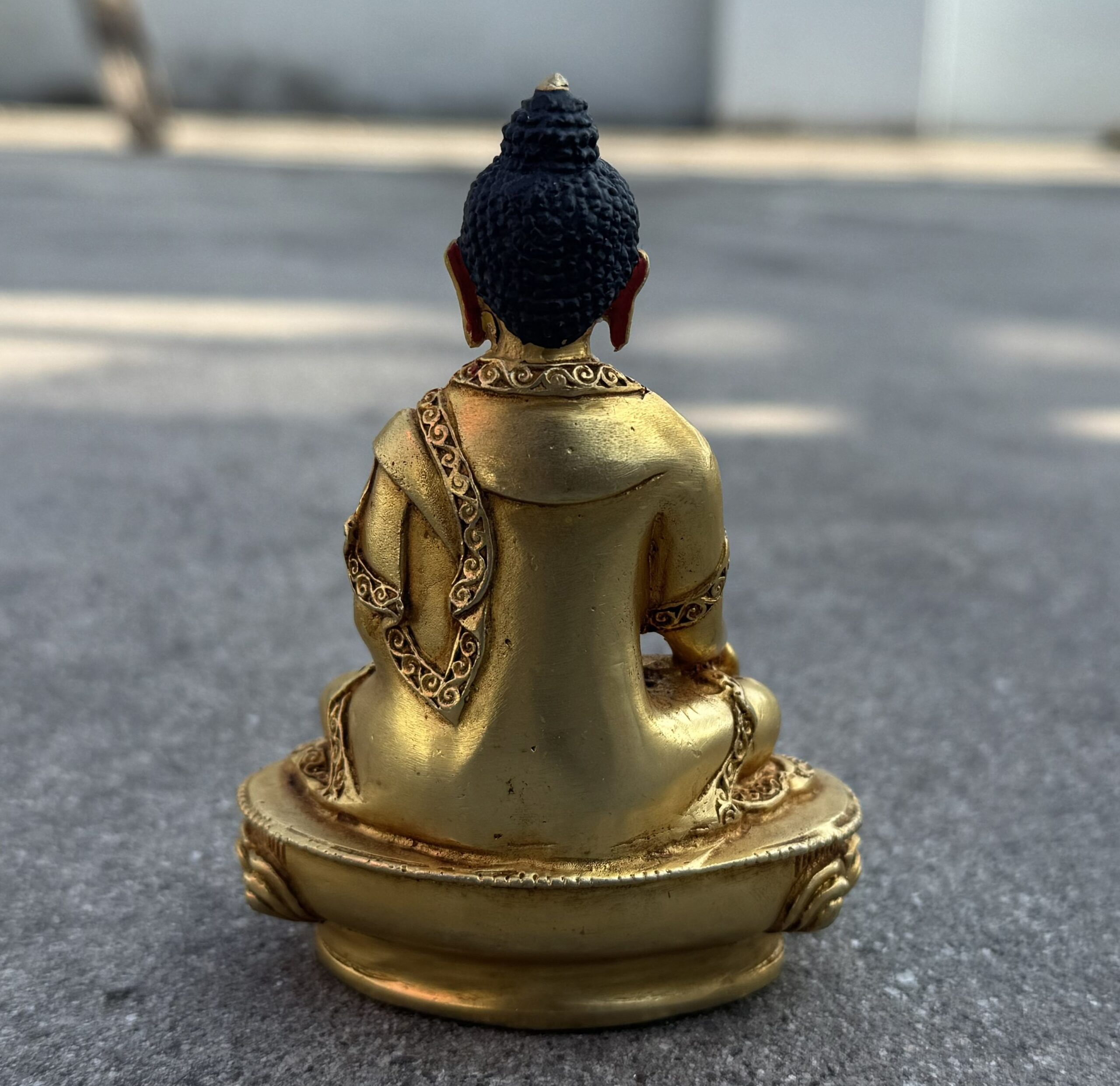 Shakyamuni Buddha is a timeless representation of peace, wisdom, and enlightenment. Expertly handcrafted from high-quality copper and richly gold gilded, the statue radiates a warm, luminous glow that enhances its sacred presence.