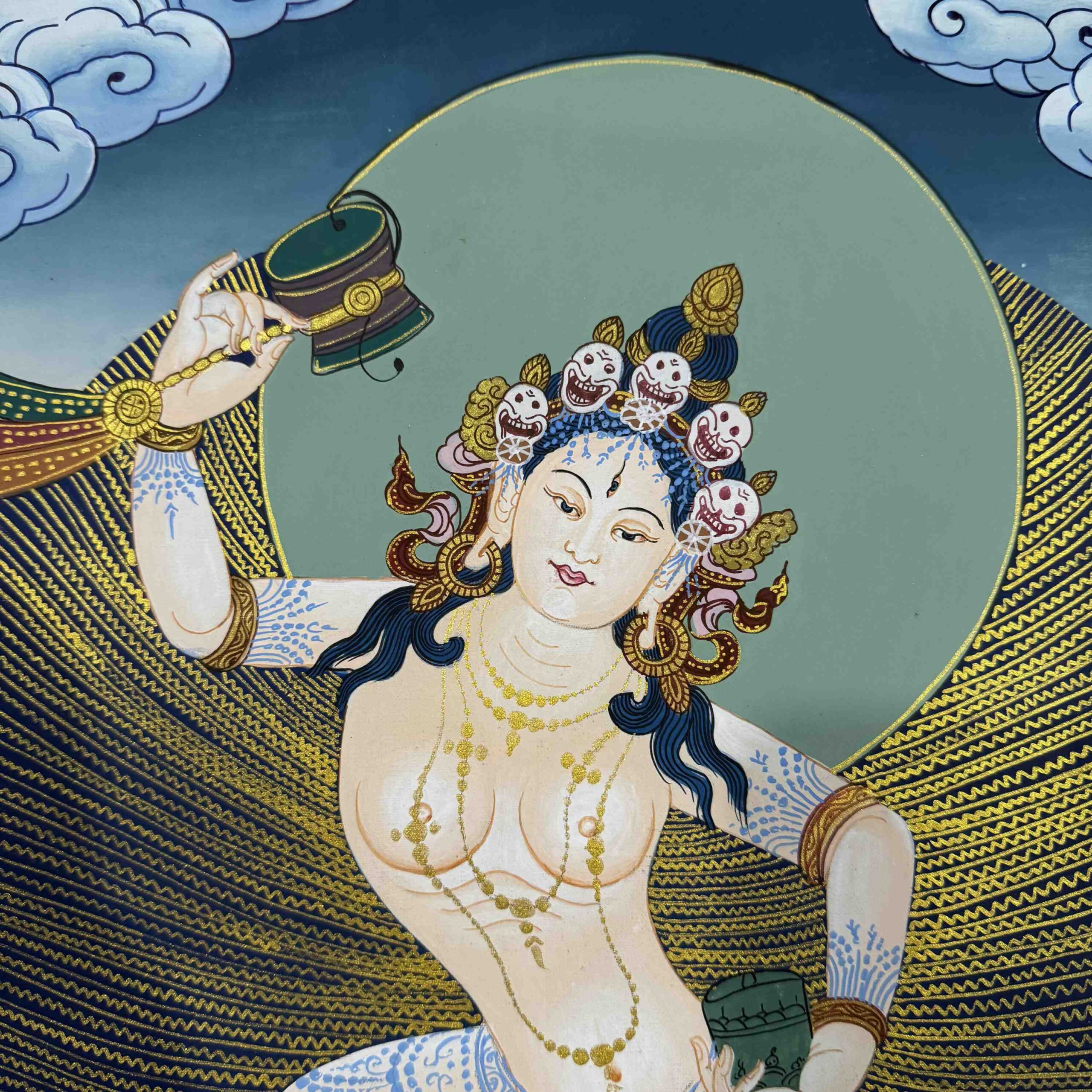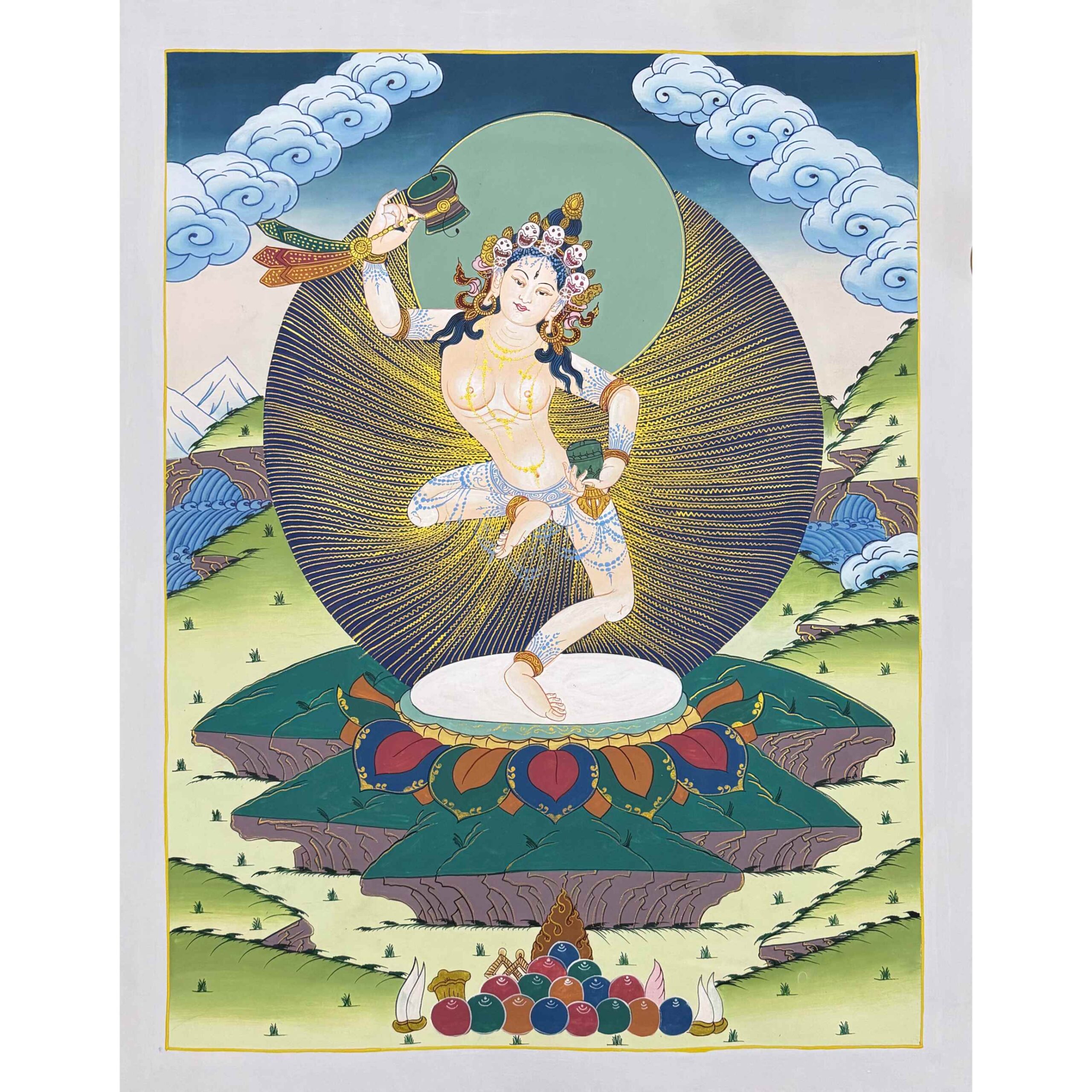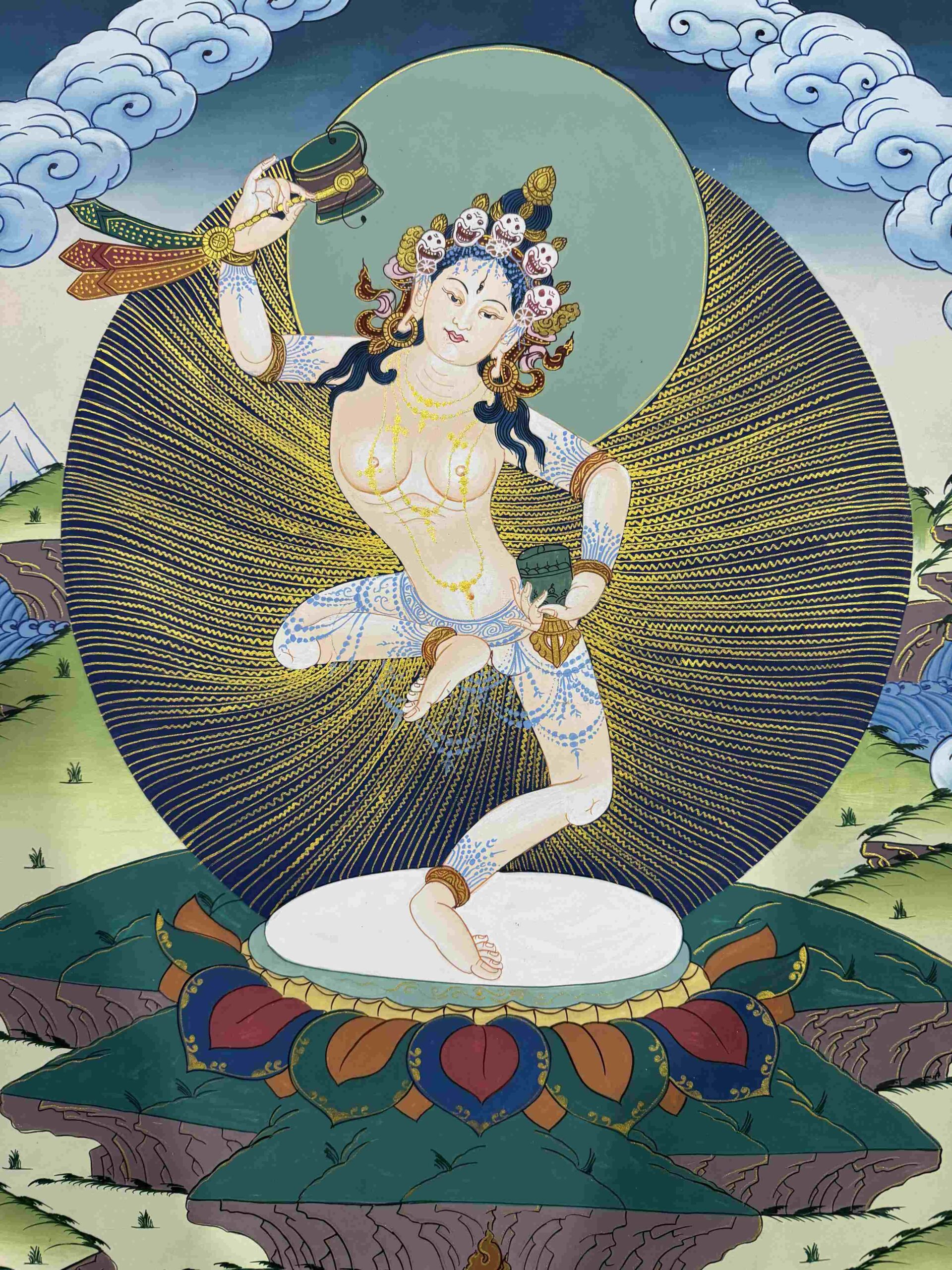 Machig Labdron is popularly considered to be both a dakini and a deity, an emanation of Yum Chenmo, or Prajnaparamita, the embodiment of the wisdom of the buddhas. Historically, this Tibetan woman, a contemporary of Milarepa, was an adept and outstanding teacher, a mother, and a founder of a unique transmission lineage known as the Chöd of Mahamudra.