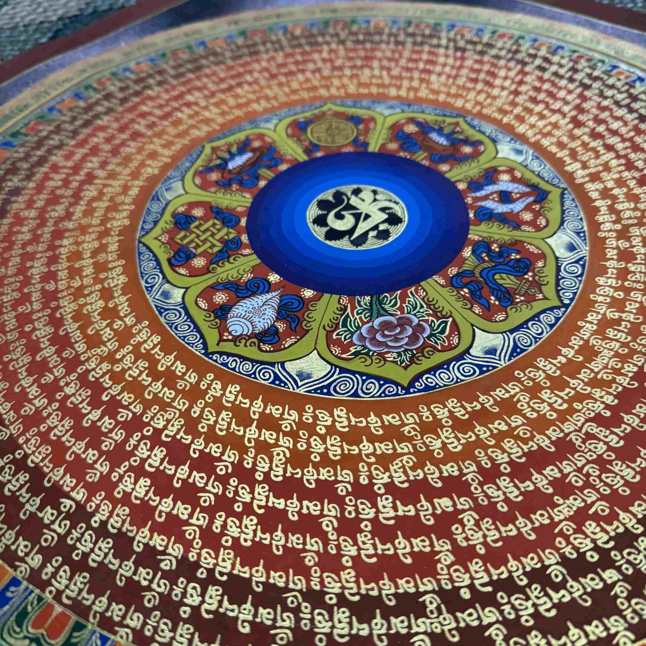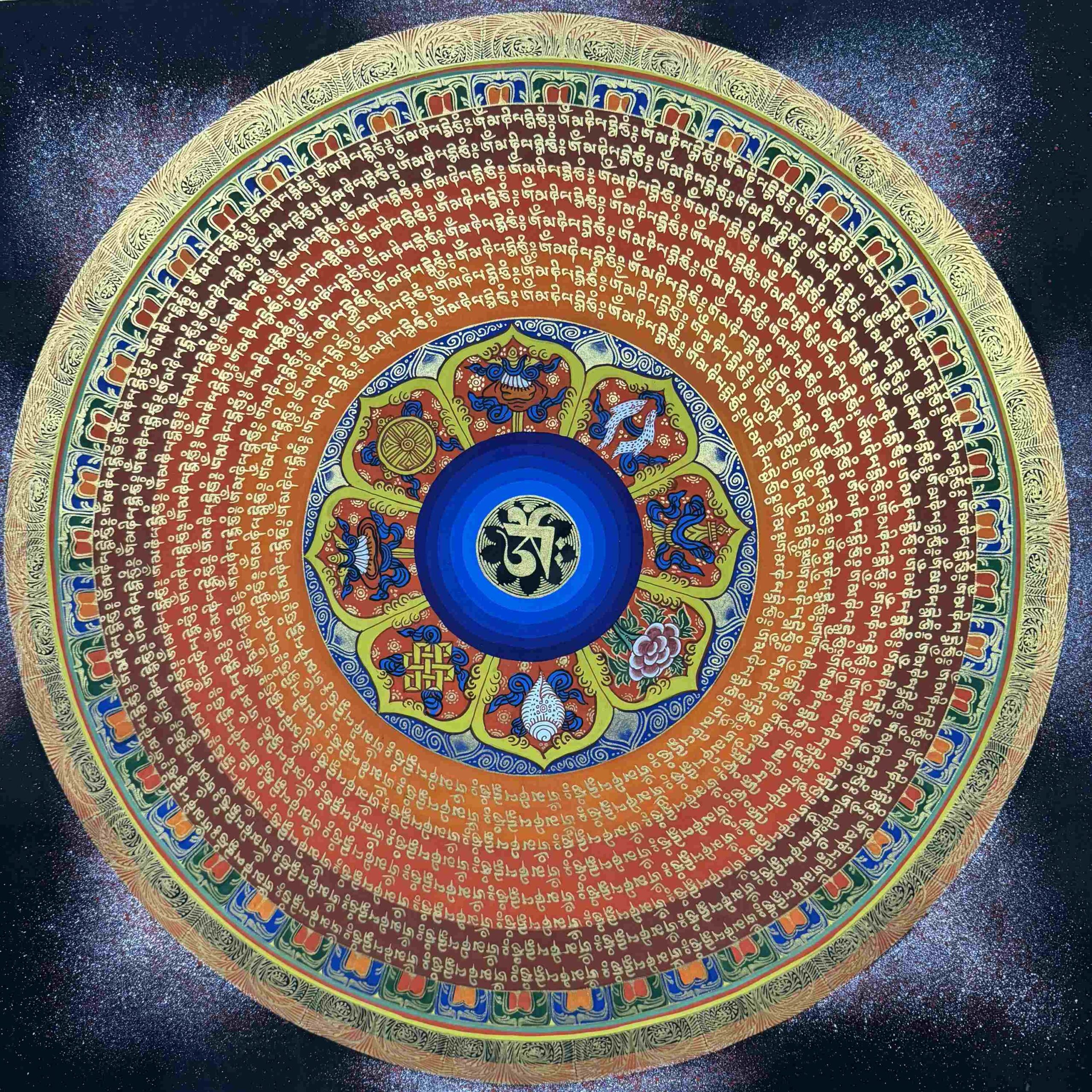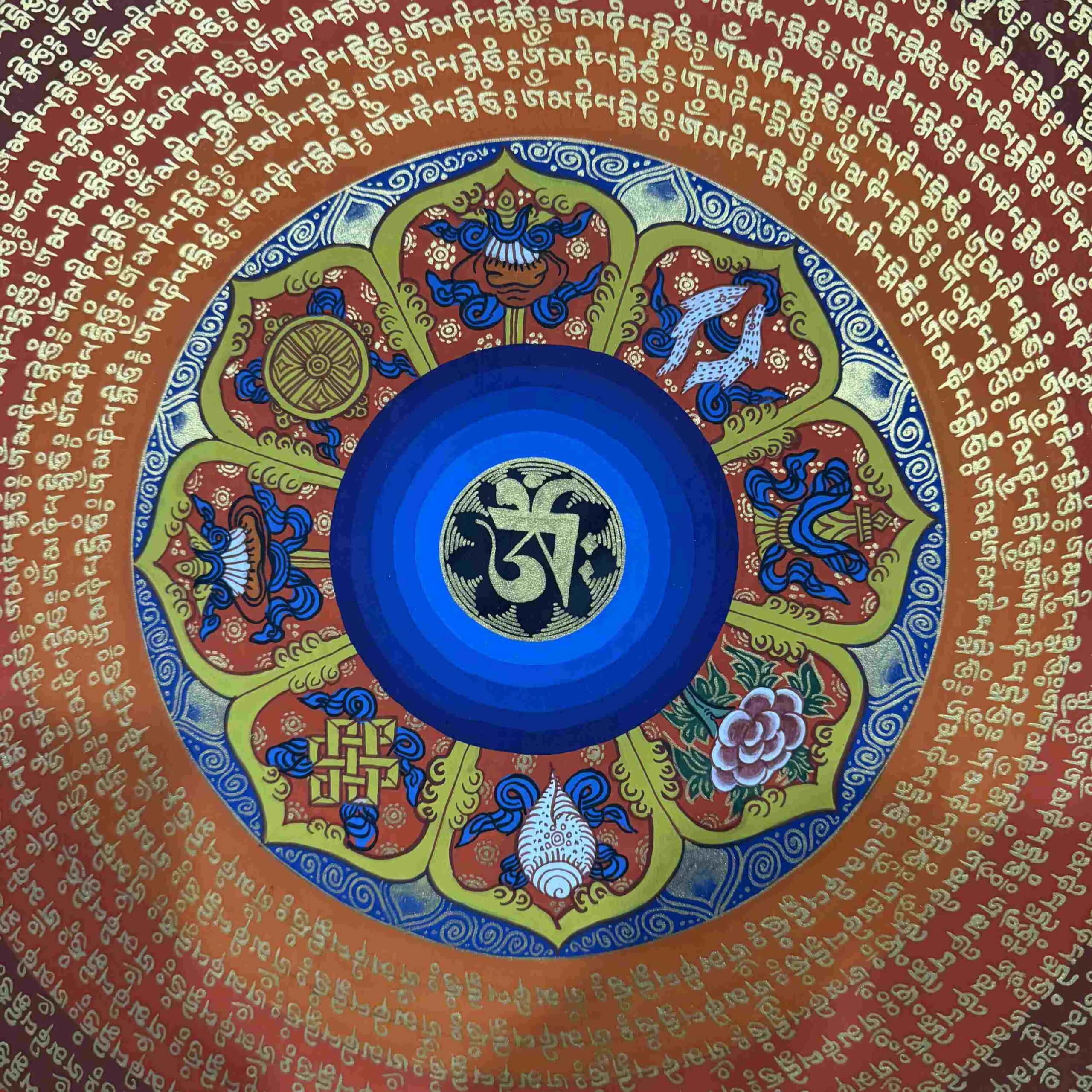 Mantra here refers to the recitation of the essence words of the particular rituals of deities. When the word mantra is separated into two segments, it reveals the inner menning of salvaging one’s mind from conceptualization, concept and fear. “Man” in Sanskrit means mind, and “tra” in Sanskrit means to protect. “om mani padme hum” the six syllables, om mani pad me hum, mean that in dependence on the practice of a path which is an indivisible union of method and wisdom, you can transform your impure body, speech, and mind into the pure exalted body, speech, and mind of a Buddha.