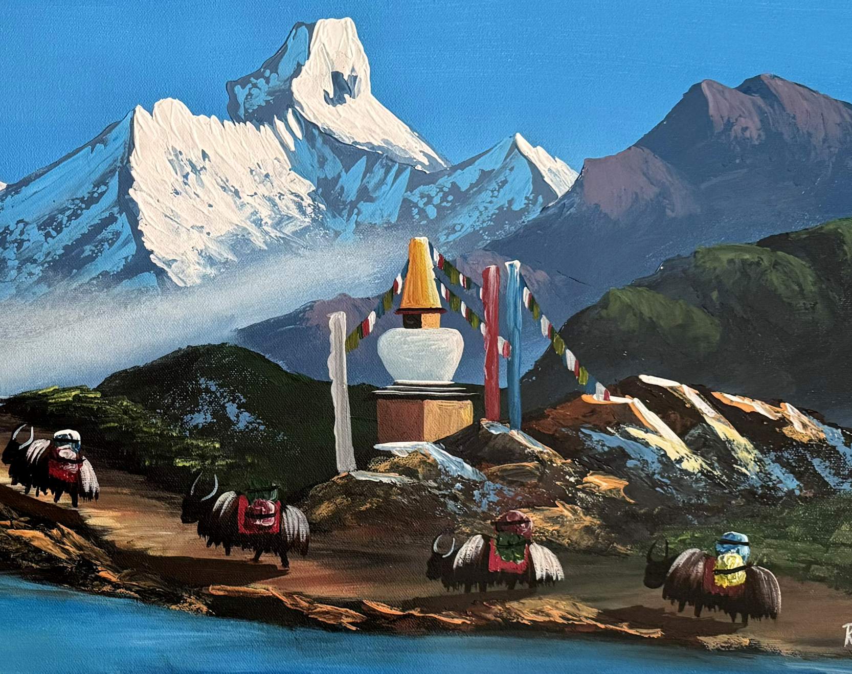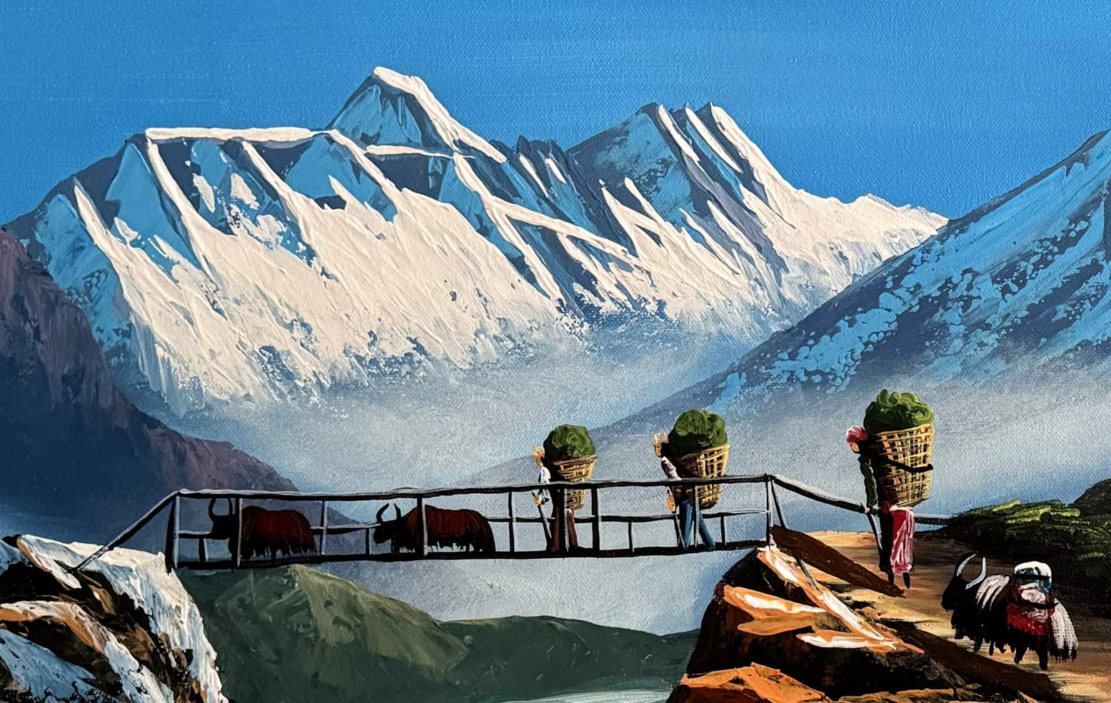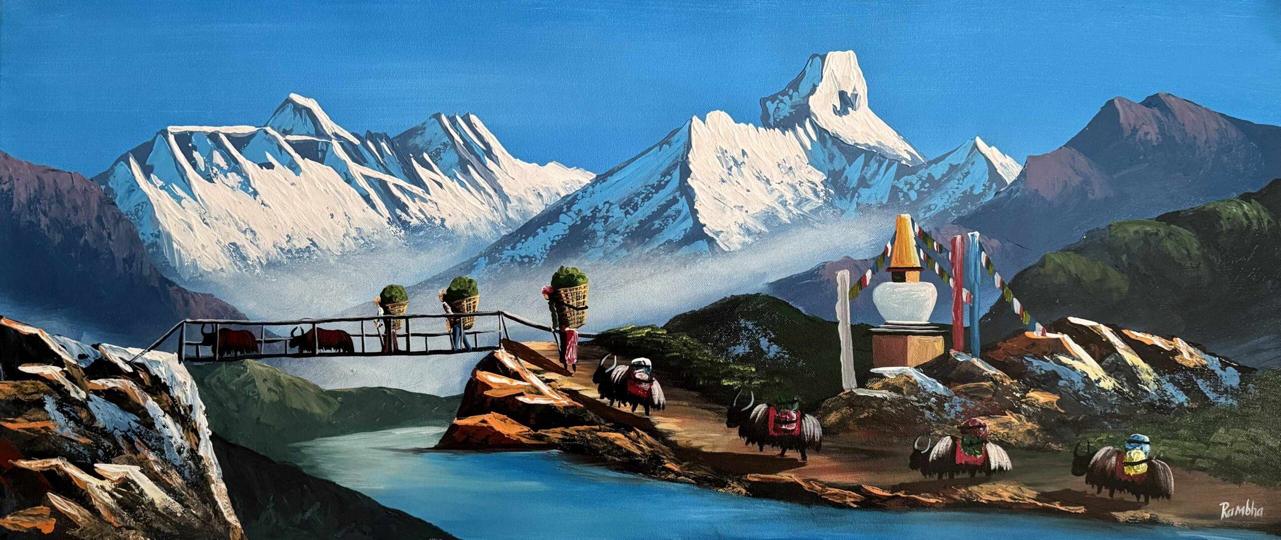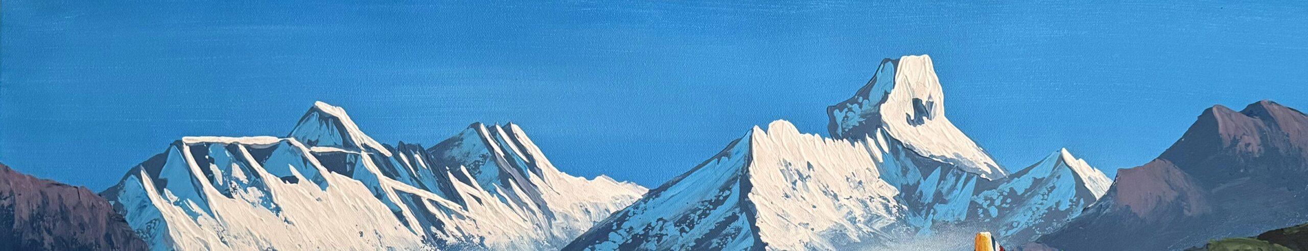 This artwork beautifully blends cultural richness and natural splendor, offering a heartfelt tribute to Nepal’s mountain heritage.