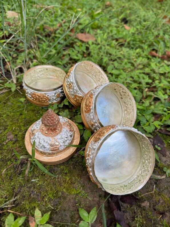 – Practitioners fill it with grains of rice, which are blessed and offered to symbolize a pure and selfless act of giving.
