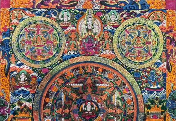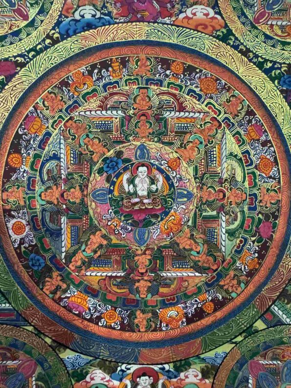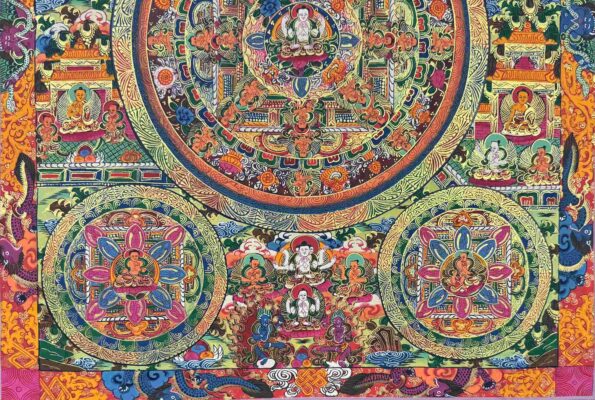 The outer part of the MANDALA shows the Samsaric life, where six different forms of life are shown, and Buddha, Boddhisattva, and protectors deities are very much eager to help them to liberate from Samsaric World.