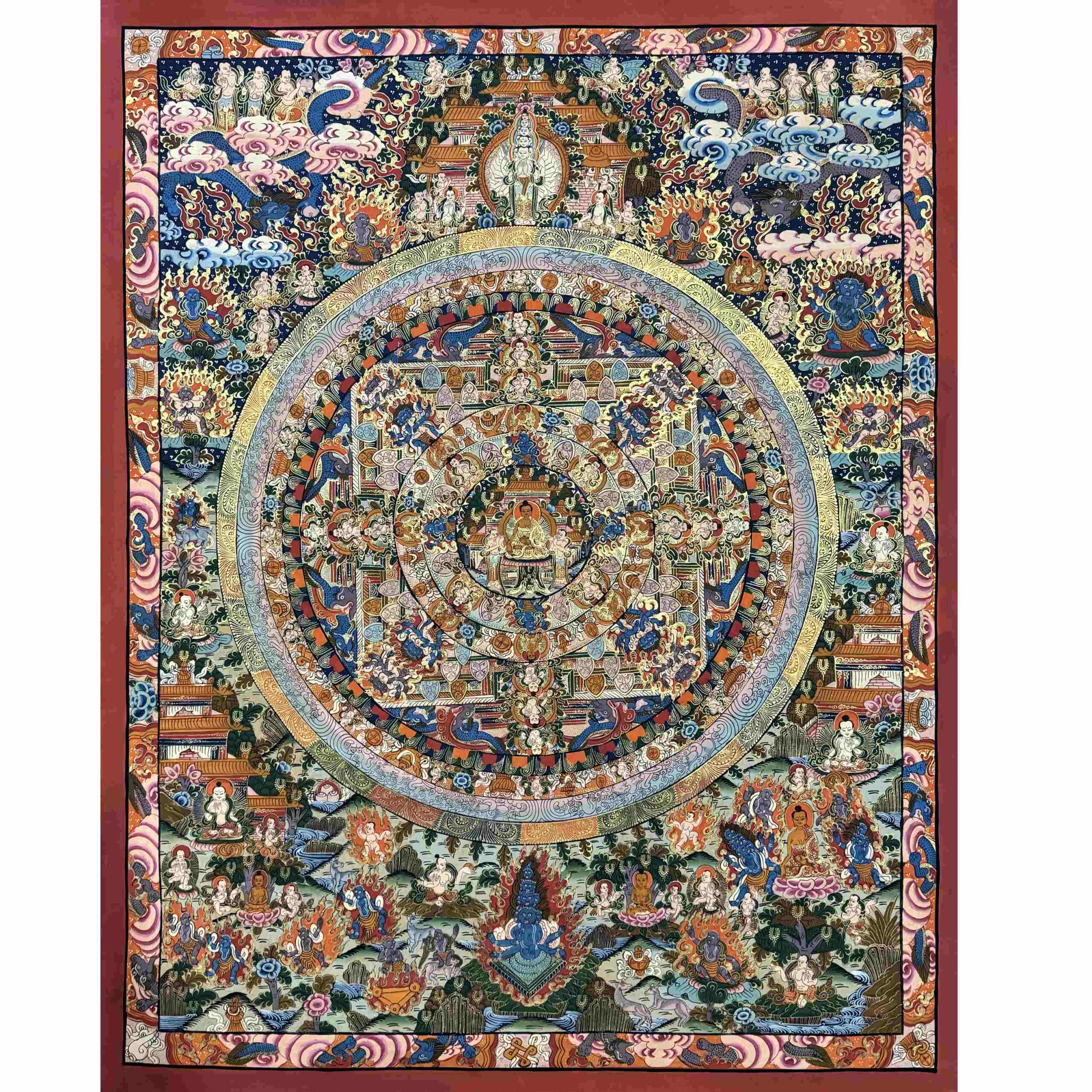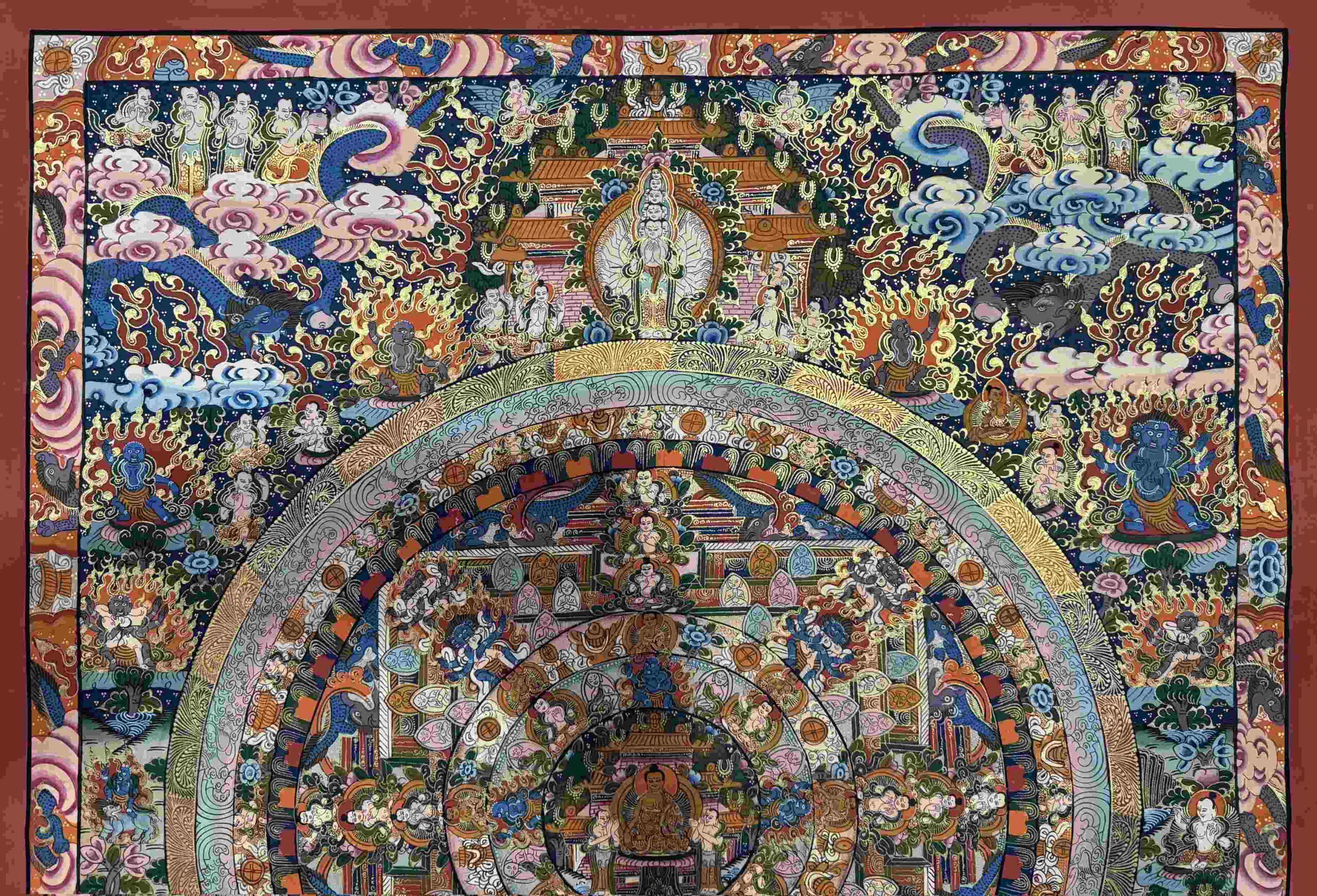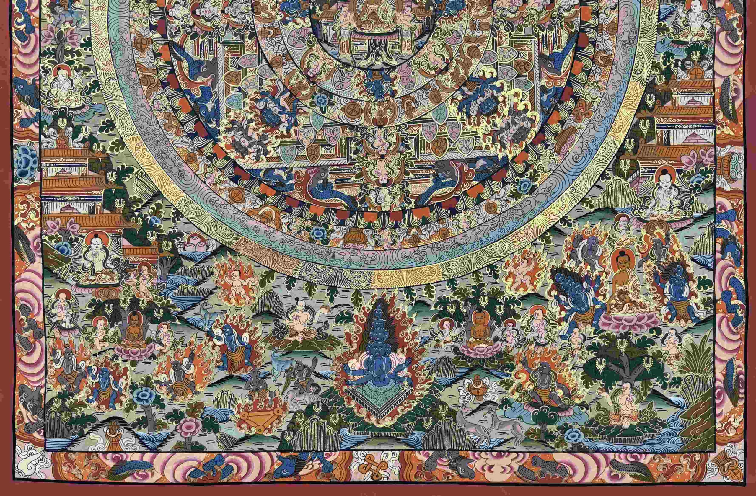 The outer part of the MANDALA shows the Samsaric life, where six different forms of life are shown, and Buddha, Boddhisattva, and protectors deities are very much eager to help them to liberate from Samsaric World.