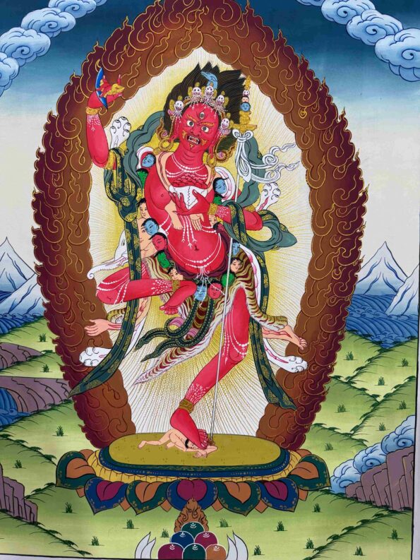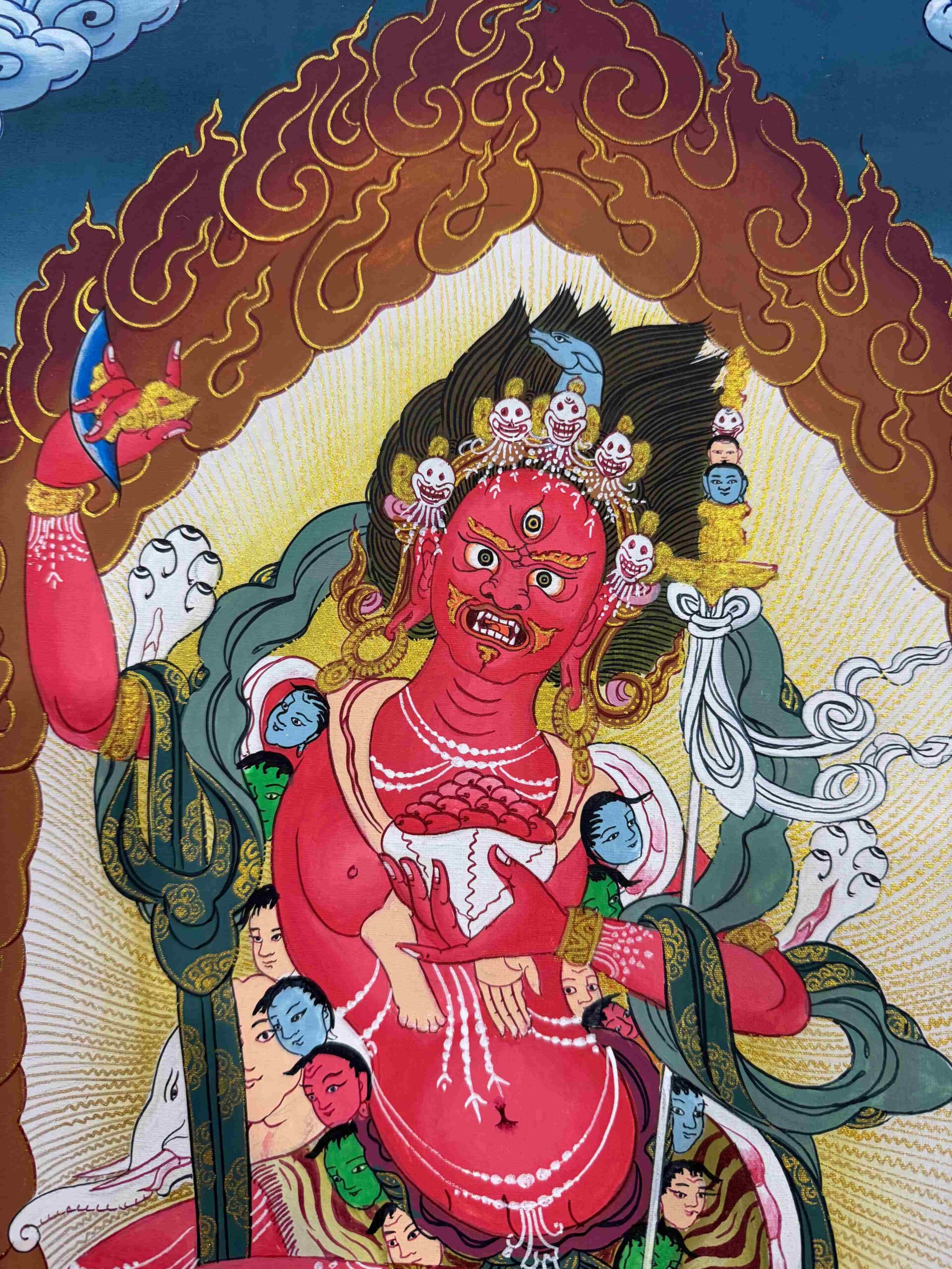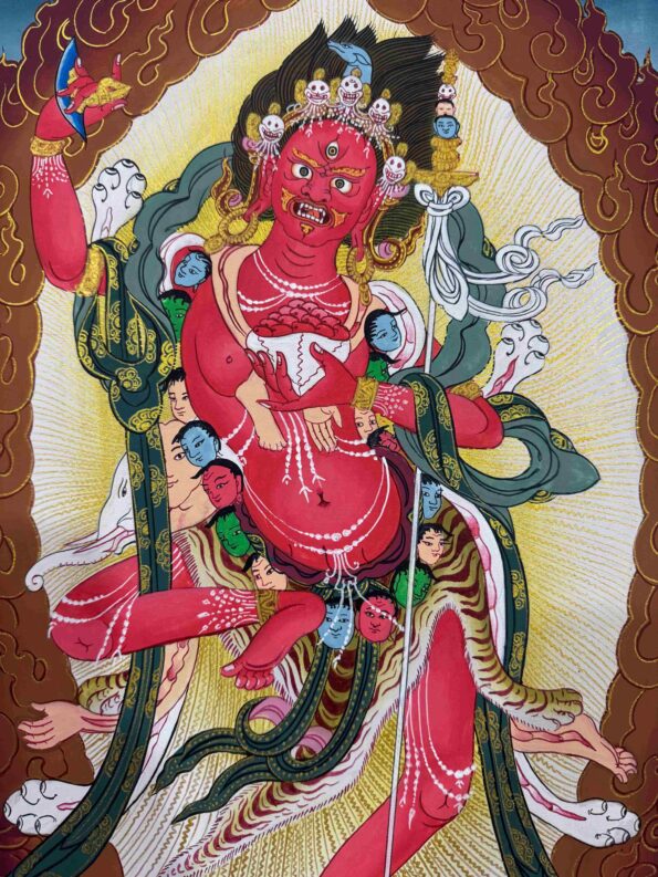These Five Afflictions are greed, hatred, delusion, jealousy, and pride. Like all fearsome figure in Tantric Buddhism, she is protective & simply wrathful for beneficial reasons.
